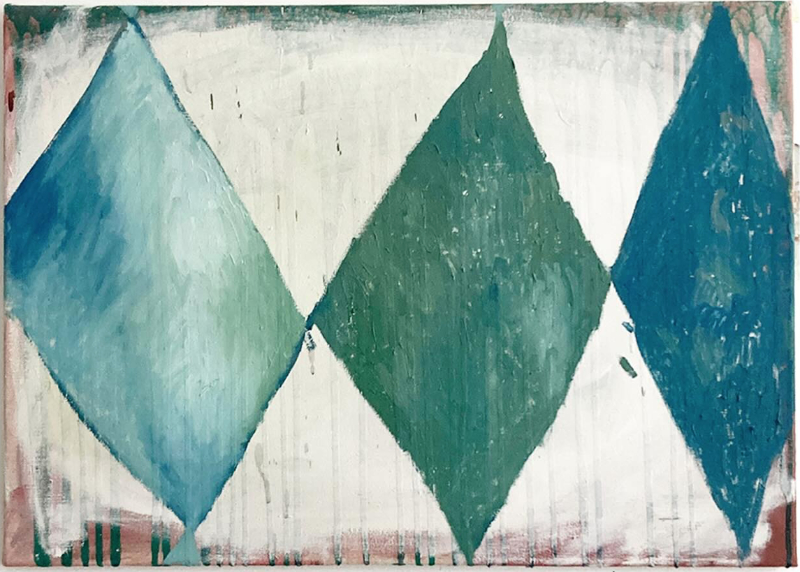 Amanda Burzić, Laughable at best, 2025, Oil and window colour on canvas, 50 x 70 cm