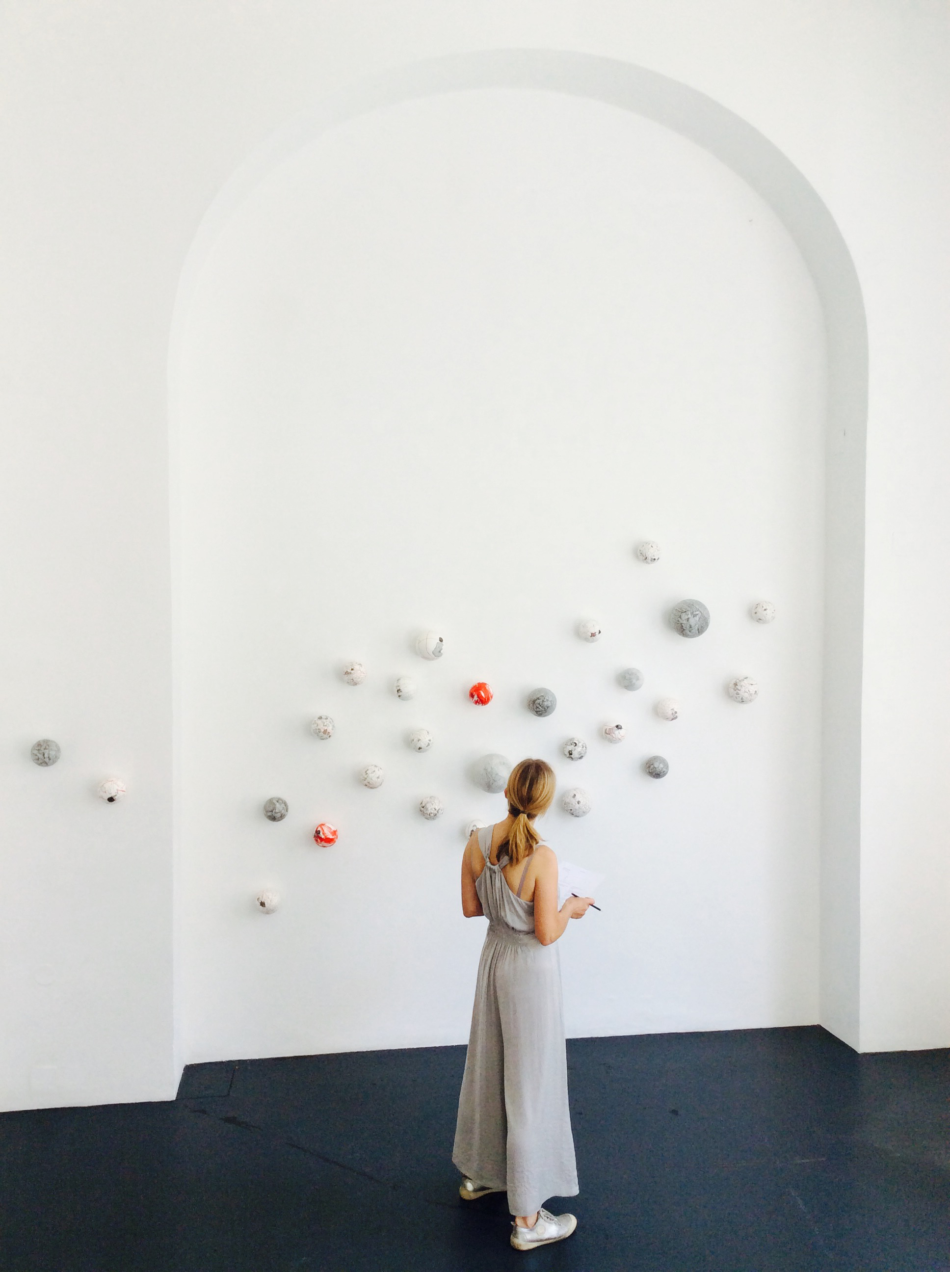 Exhibition View, aus der Serie „you are my only one“, 2016, Tuschezeichnung auf Styropor-kugel, 12 ø & 15 ø cm